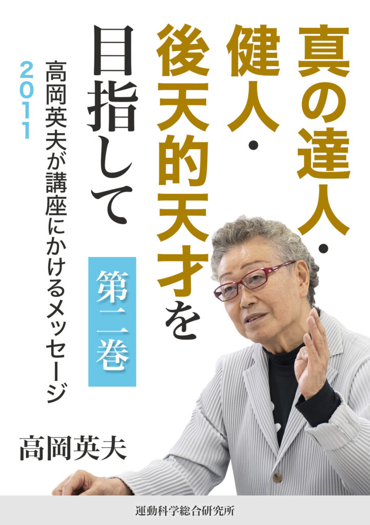 目次「真の達人・健人・後天的天才を目指して」[電子書籍] 真の達人・健人・後天的天才を目指して第一巻 高岡英夫が講座にかけるメッセージ 2009・2010 今すぐ読む 真の達人・健人・後天的天才を目指して第二巻 高岡英夫が講座にかけるメッセージ 2011 今すぐ読む 電子書籍 センター ゆる 歩道 総合呼吸法 肩包面 脱力 身体意識 『大谷翔平は人類の究極に到達できるか?!』[電子書籍] 『武術・スポーツ本質革命論』[電子書籍] 関連記事 『武術・スポーツ本質革命論』[電子書籍] 2026年4月15日 『大谷翔平は人類の究極に到達できるか?!』[電子書籍] 2026年2月21日 『病障リスク9割減「ゆる体操」』[電子書籍] 2025年12月15日 『高岡英夫の護身学』[電子書籍] 2025年9月21日 『特に優れた五輪金メダリストの能力を身体意識論で解き明かす』[電子書籍] 2025年6月17日 『肩甲骨が回れば、アスリートの才能が爆発的に開花する!』[第7章・終章] 2025年4月15日 『武術・武道の科学化がスポーツの超進化を生む』[電子書籍] 2025年2月28日 『武蔵とイチロー』[電子書籍版] 2025年1月1日